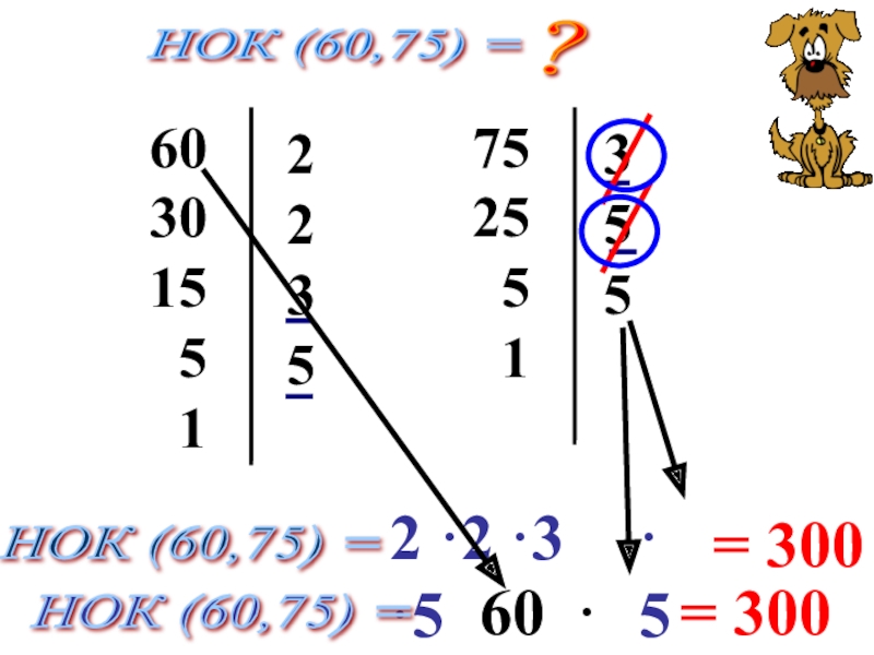 НОК (75; 60) = 3 ∙ 5 ∙ 5∙ 2∙ 2 = 75∙ 2 ∙ 2 = 300.