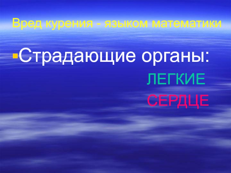 Вред курения - языком математикиСтрадающие органы: