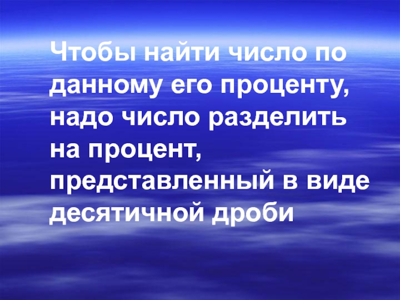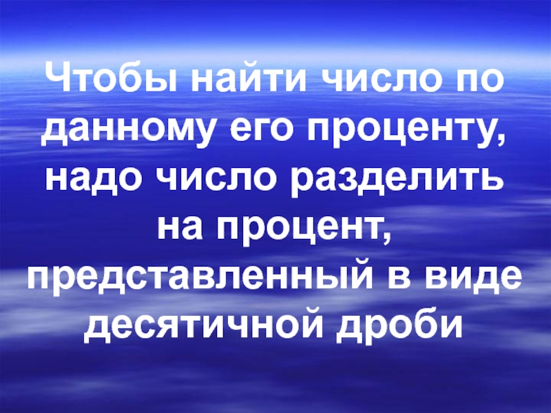 Слайд 12Чтобы найти число по данному его проценту, надо число разделить на