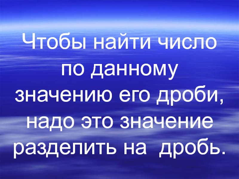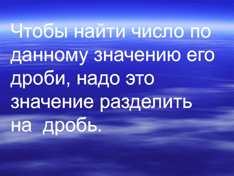 Слайд 8Чтобы найти число по данному значению его дроби, надо это значение