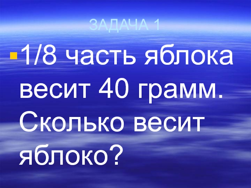 ЗАДАЧА 11/8 часть яблока весит 40 грамм. Сколько весит яблоко?