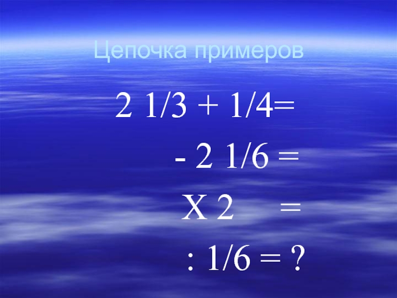 Цепочка примеров2 1/3 + 1/4=    - 2 1/6 =    Х 2