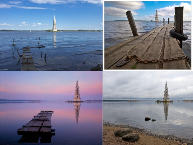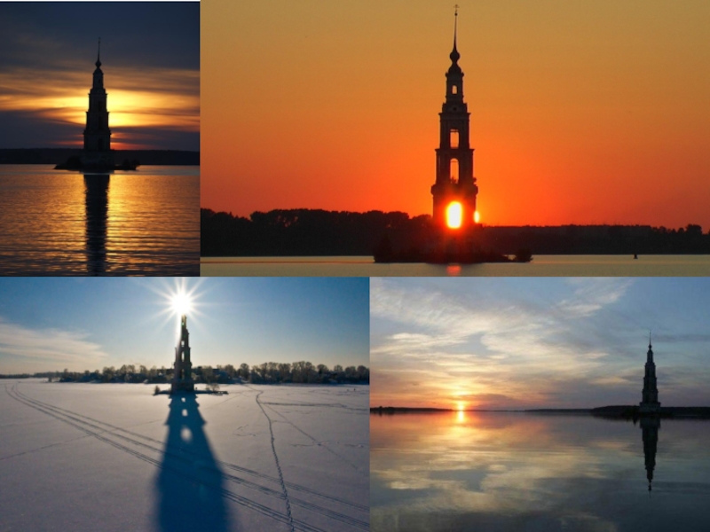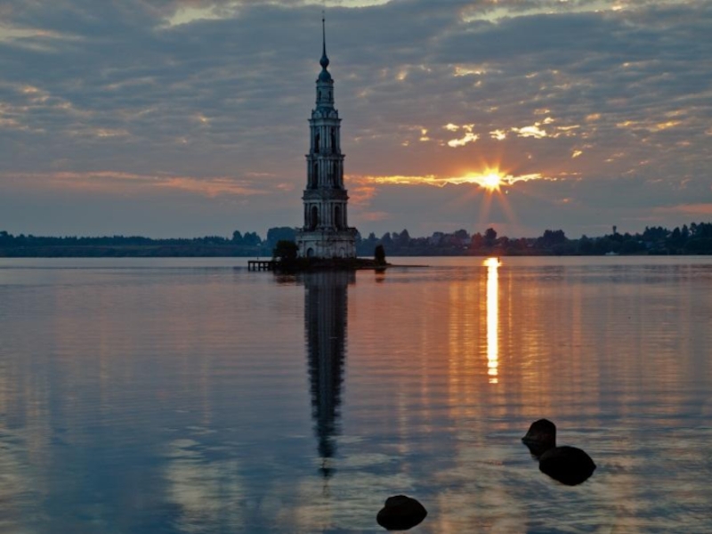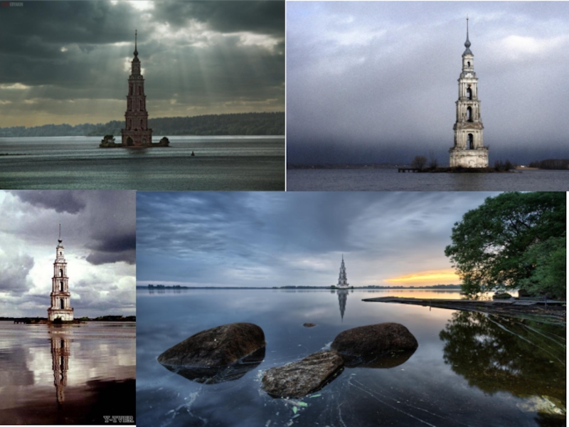 положено ещё в 1920-е годы. По этому проекту предусматривалось искусственное расширение реки Волги, создания на её акватории гидроэлектростанций. При создании Угличского водохранилища старая часть Калязина оказалась в зоне затопления; собор был разобран, а колокольню оставили в качестве маяка. Сразу же, как по Волге начали ходить груженые баржи, стало ясно, что ориентироваться на другие знаки было невозможно, поскольку здесь очень крутой поворот реки. В архивных документах того времени колокольня фигурирует как маяк.