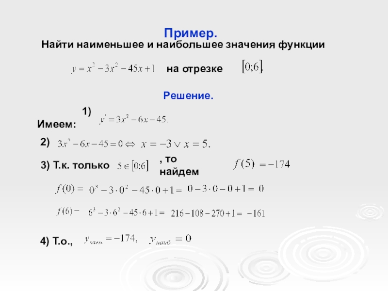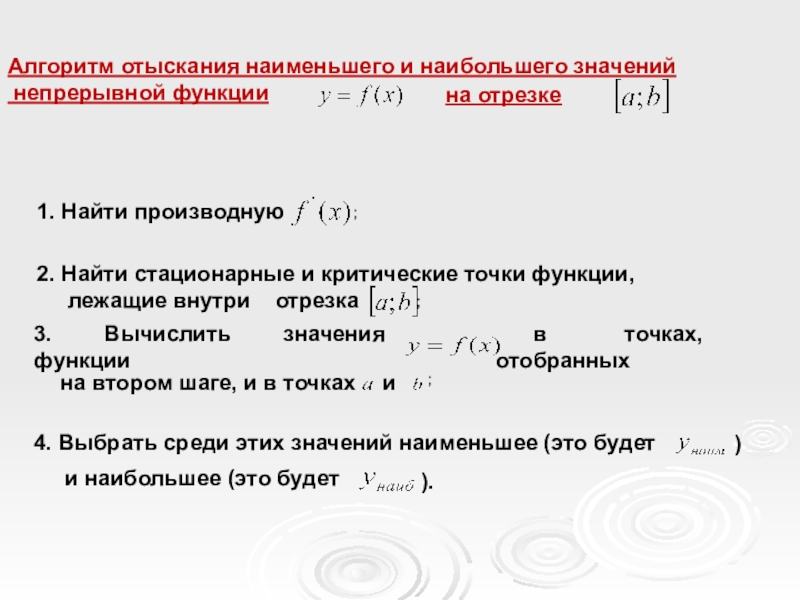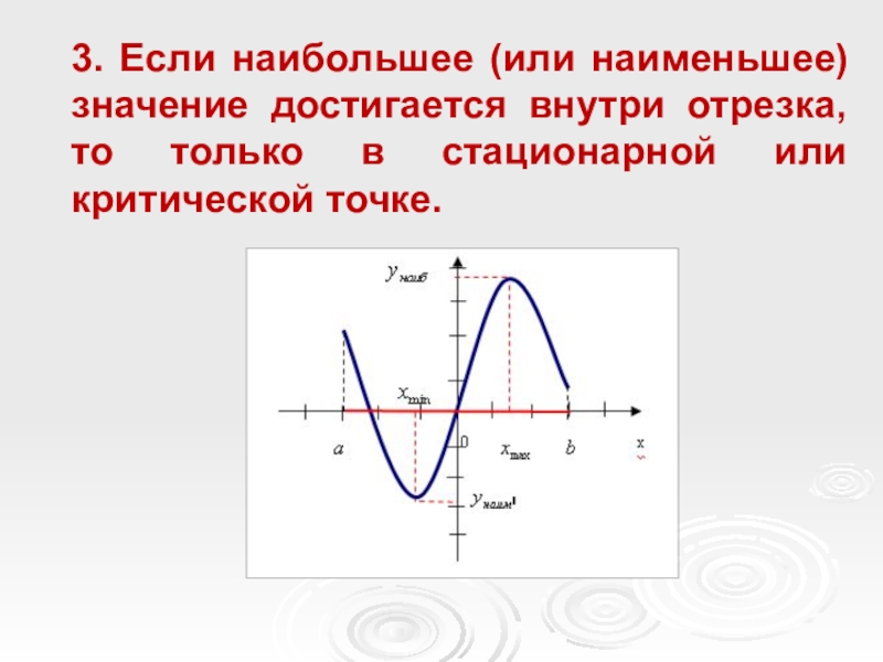 3. Если наибольшее (или наименьшее) значение достигается внутри отрезка, то только в стационарной или критической точке.