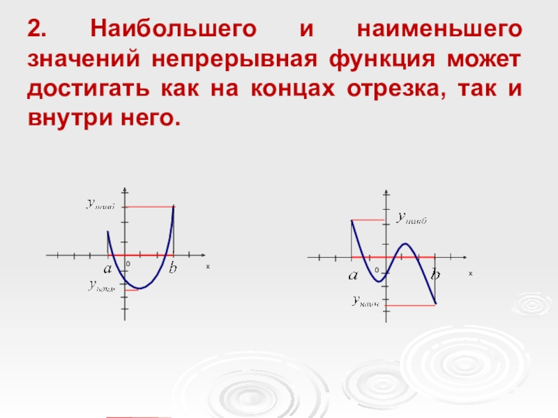 2. Наибольшего и наименьшего значений непрерывная функция может достигать как на концах отрезка, так и внутри него.