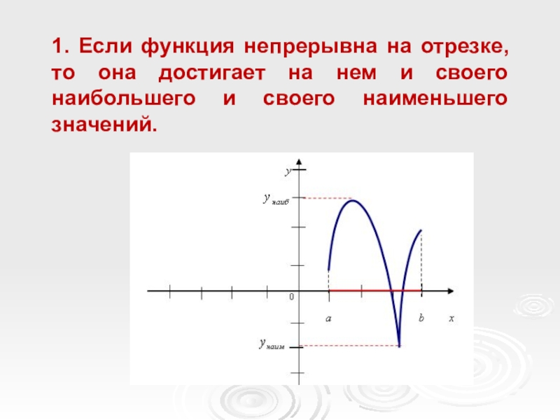 1. Если функция непрерывна на отрезке, то она достигает на нем и своего наибольшего и своего наименьшего