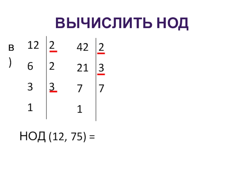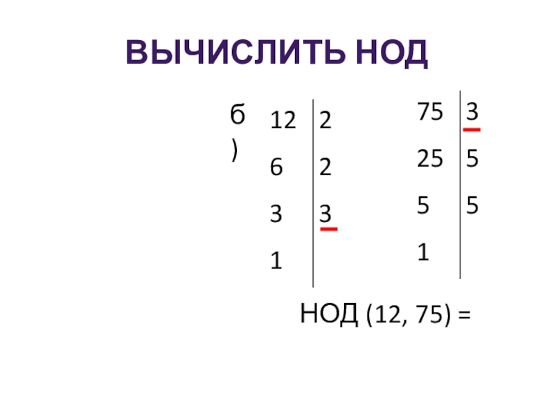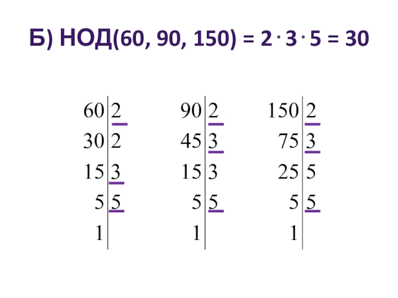 Слайд 12б) НОД(60, 90, 150) = 235 = 30