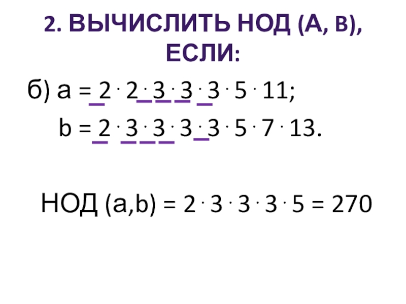 2. Вычислить НОД (а, b), если:б) а = 22333511;    b = 233335713.НОД (а,b) =
