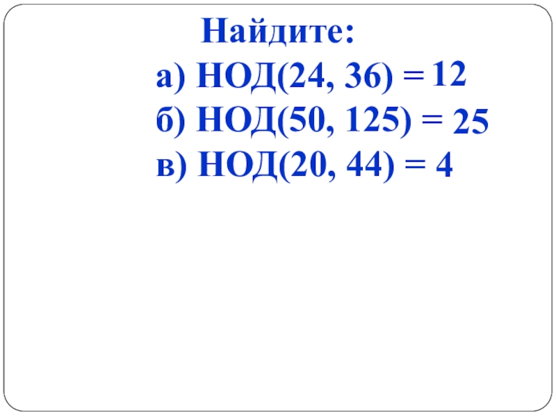 Найдите наибольший общий делитель чисел: