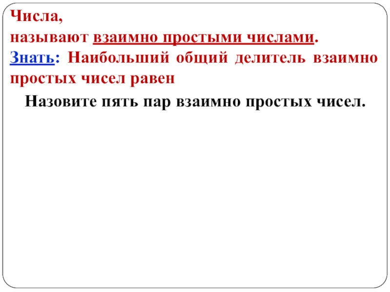 Назовите пять пар взаимно простых чисел.