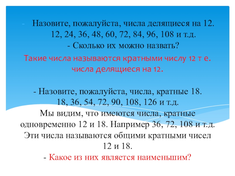 12, 24, 36, 48, 60, 72, 84, 96, 108 и т.д.