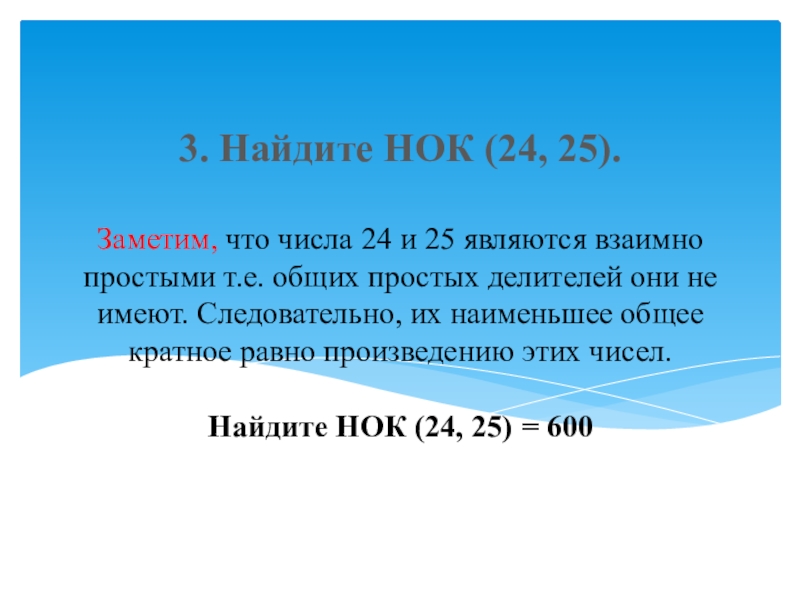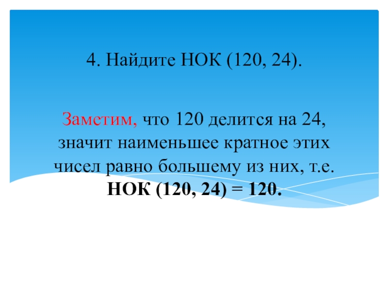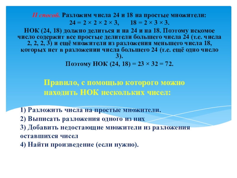 Поэтому НОК (24, 18) = 23 × 32 = 72.