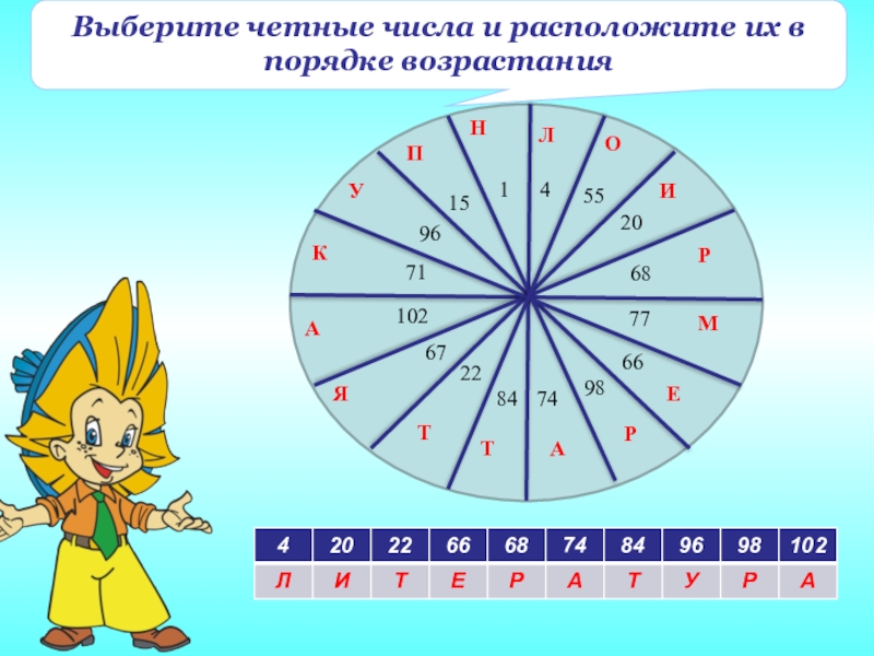 Слайд 3Выберите четные числа и расположите их в порядке возрастания