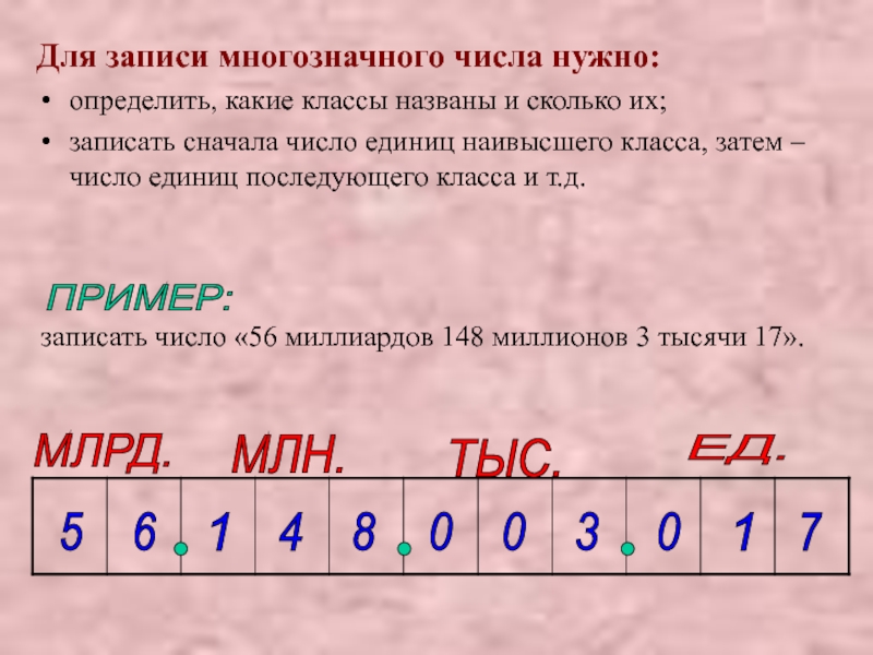 записать число «56 миллиардов 148 миллионов 3 тысячи 17».