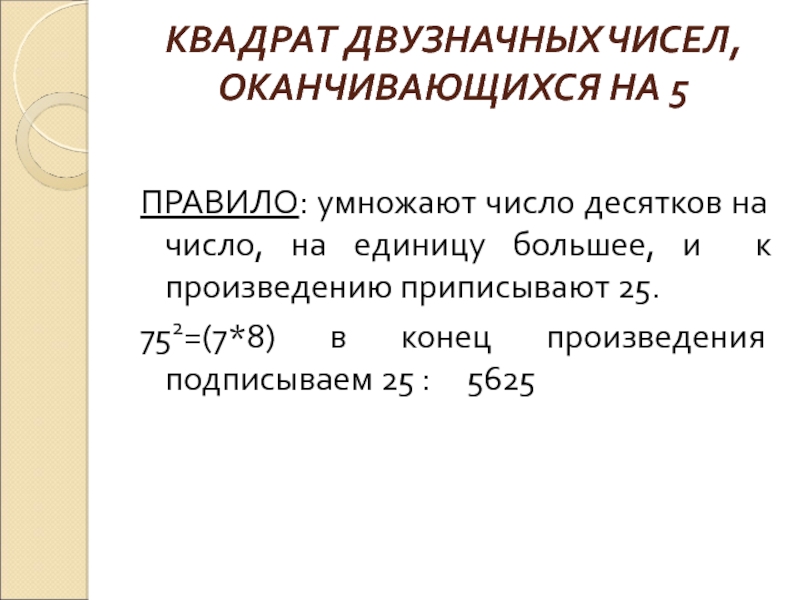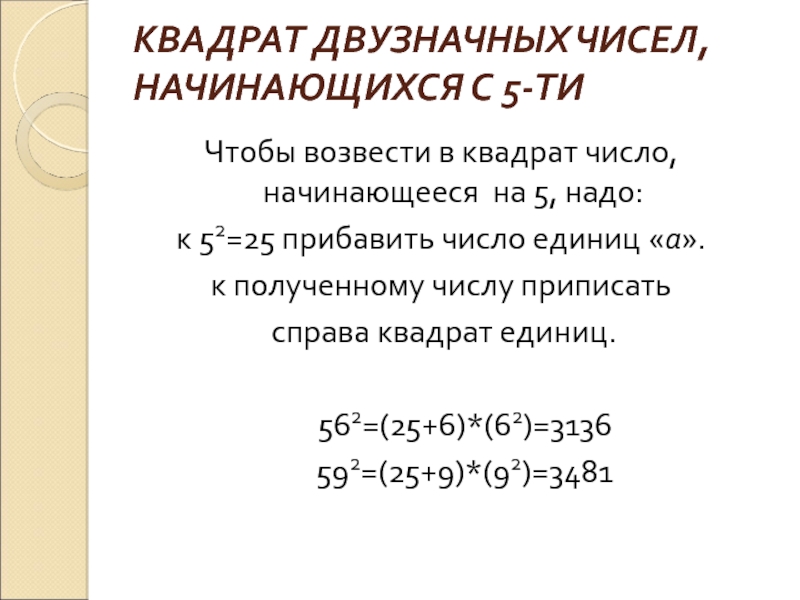 Квадрат двузначных чисел, начинающихся с 5-ти; квадрат двузначных чисел, оканчивающихся на 5