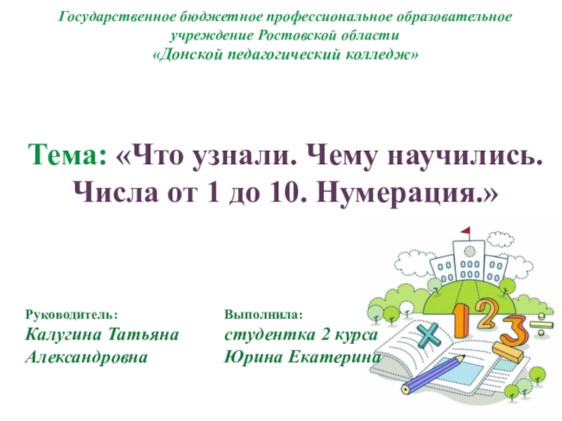 узнали. Чему научились. Числа от 1 до 10. Нумерация.»