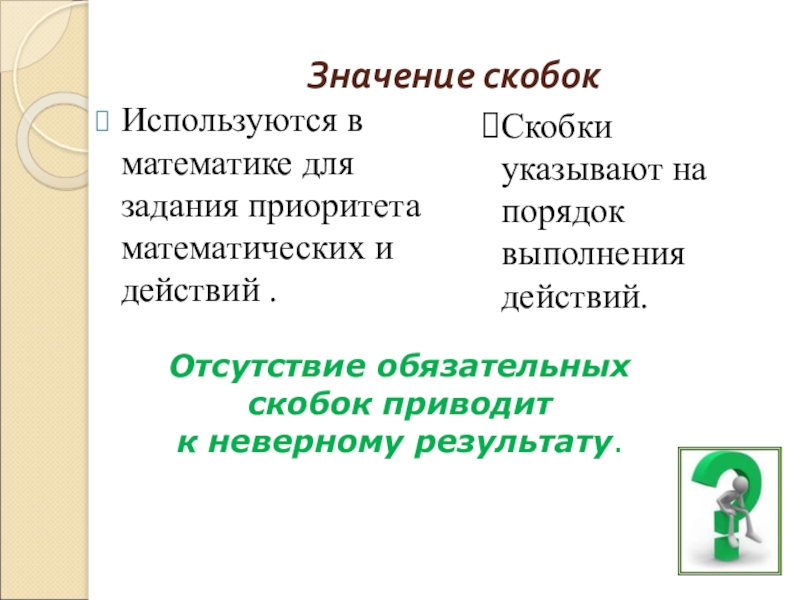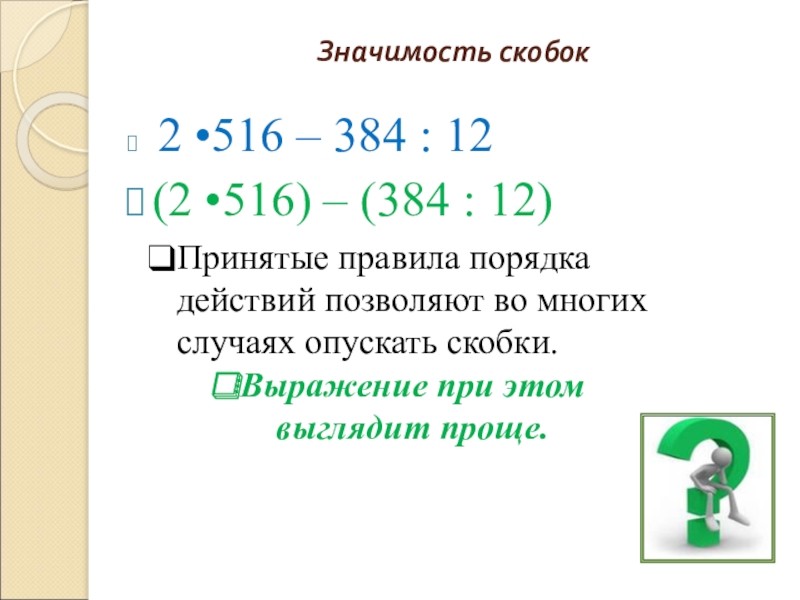 Принятые правила порядка действий позволяют во многих случаях опускать скобки.