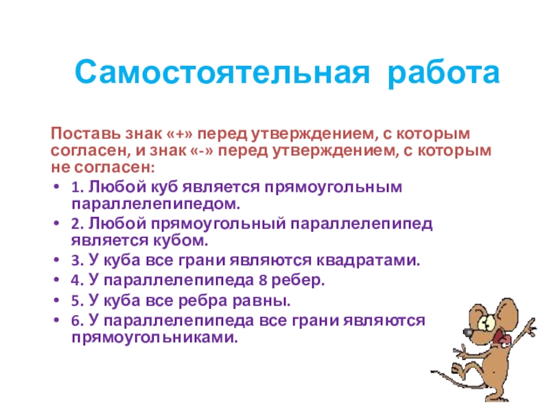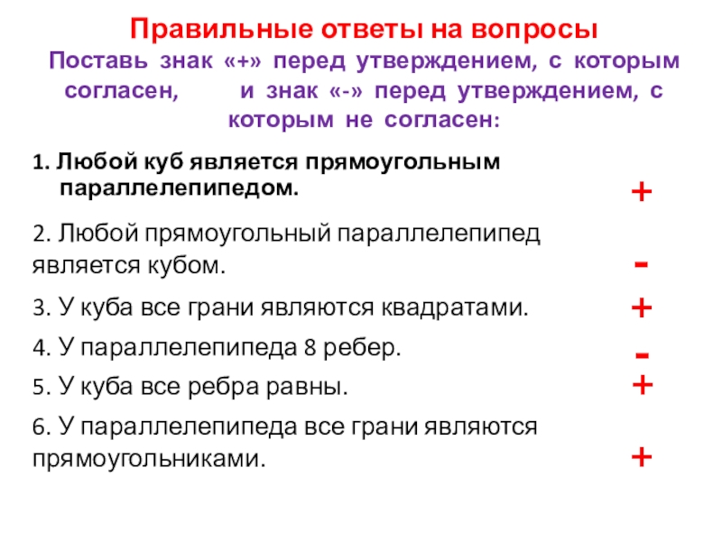 7) Что можно сказать о гранях, ребрах, измерениях куба?