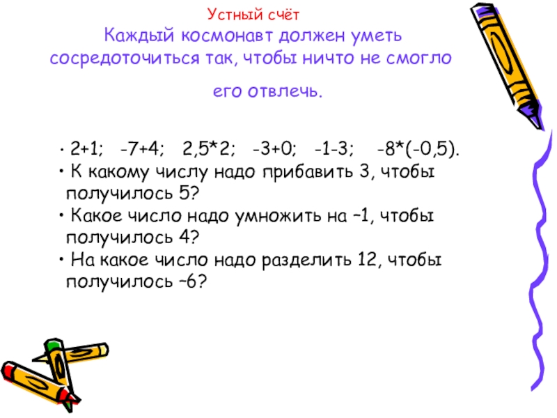 2+1; -7+4; 2,5*2; -3+0; -1-3; -8*(-0,5).