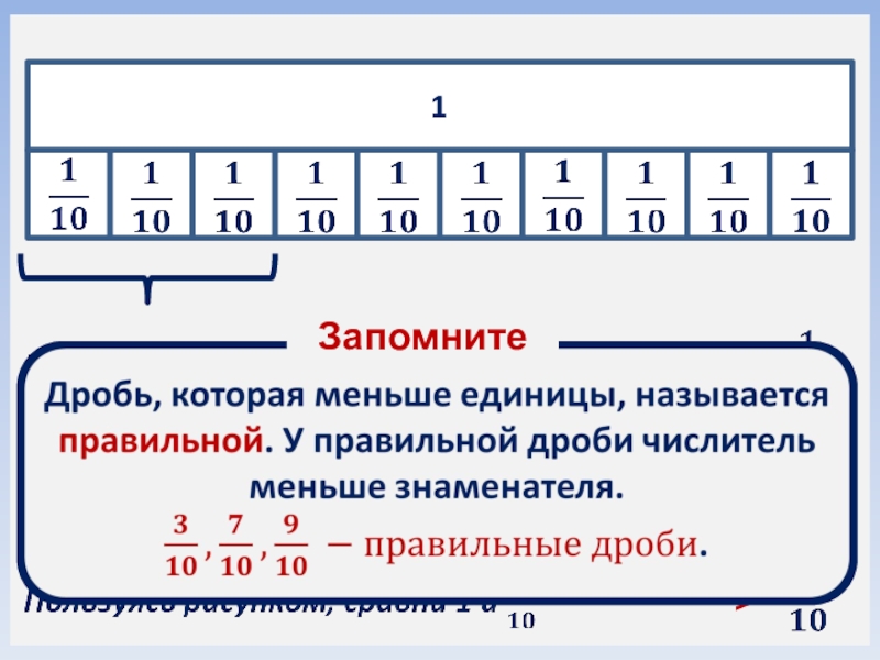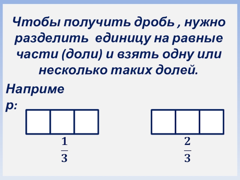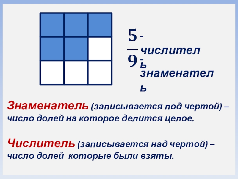 Числитель (записывается над чертой) – число долей которые были взяты.