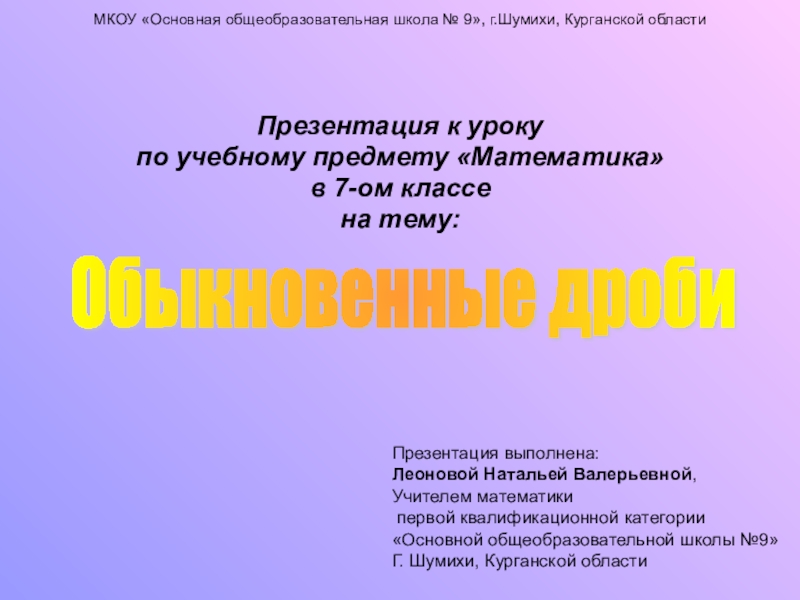 МКОУ «Основная общеобразовательная школа № 9», г.Шумихи, Курганской области