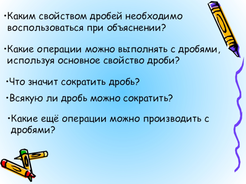 Сформулируйте правило сравнения дробей с равными числителями, с равными знаменателями, с разными знаменателями.