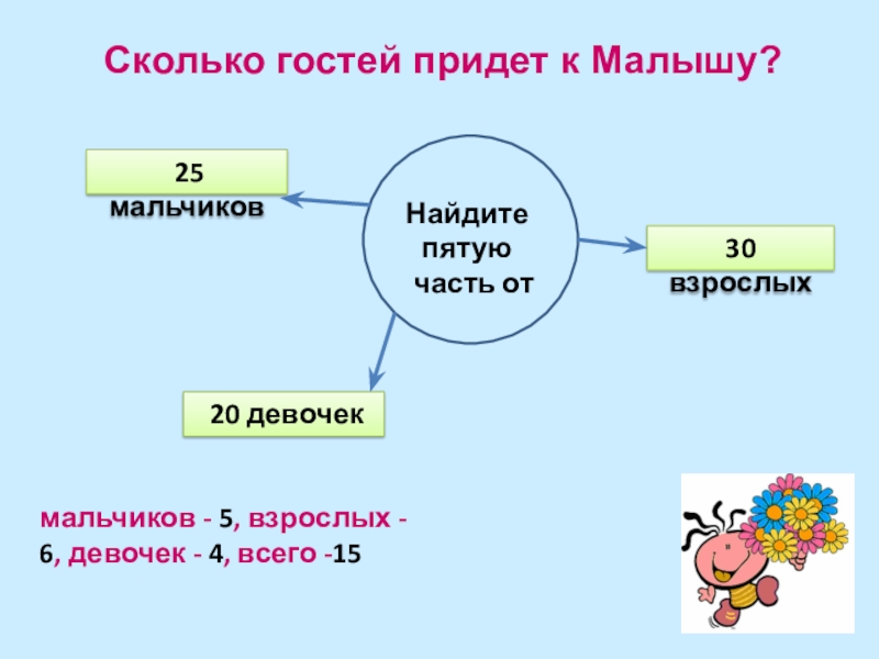 мальчиков - 5, взрослых - 6, девочек - 4, всего -15