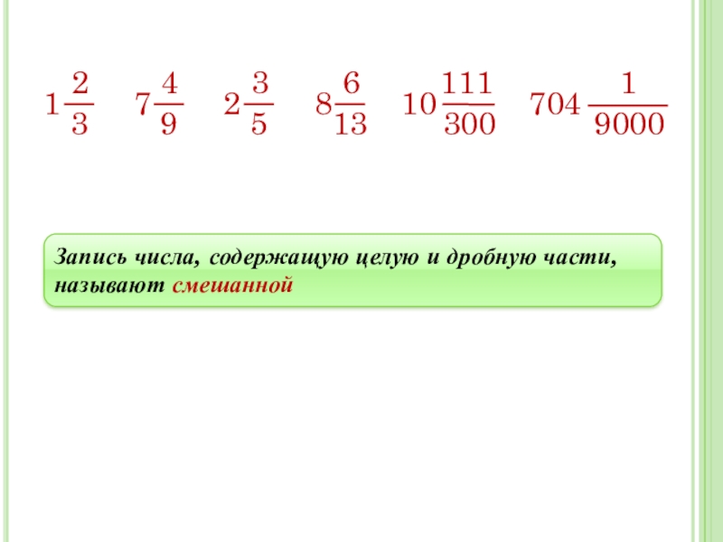 Запись числа, содержащую целую и дробную части, называют смешанной