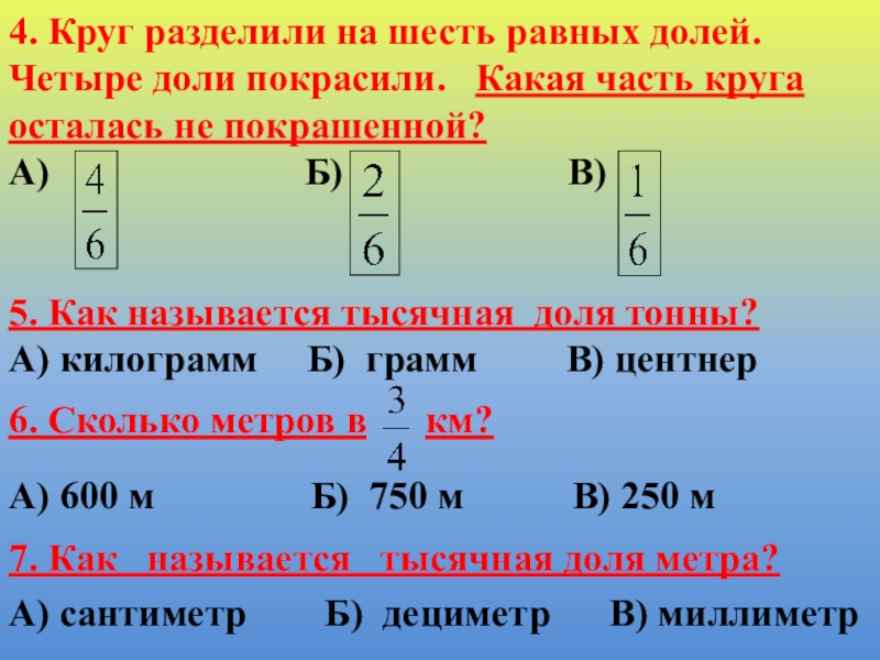 Определите каким дробям соответствовали названия: полтреть, полполтреть, полполполчеть?