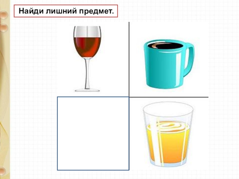 Слайд 3 Найди лишний предмет.