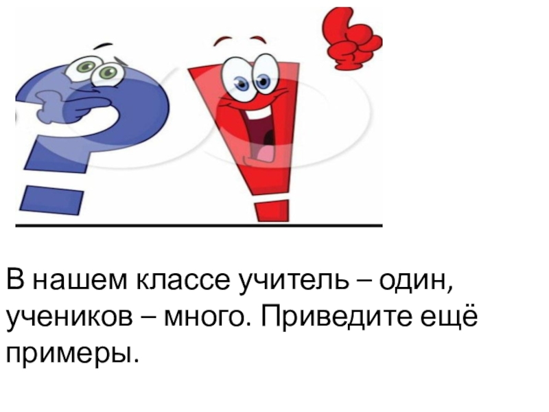 Слайд 3В нашем классе учитель – один, учеников – много. Приведите ещё