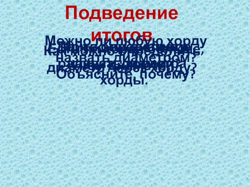 Можно ли любую хорду назвать диаметром? Объясните, почему?