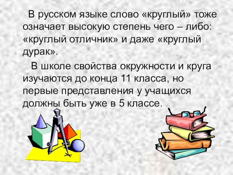 Слайд 4 В русском языке слово «круглый» тоже означает высокую