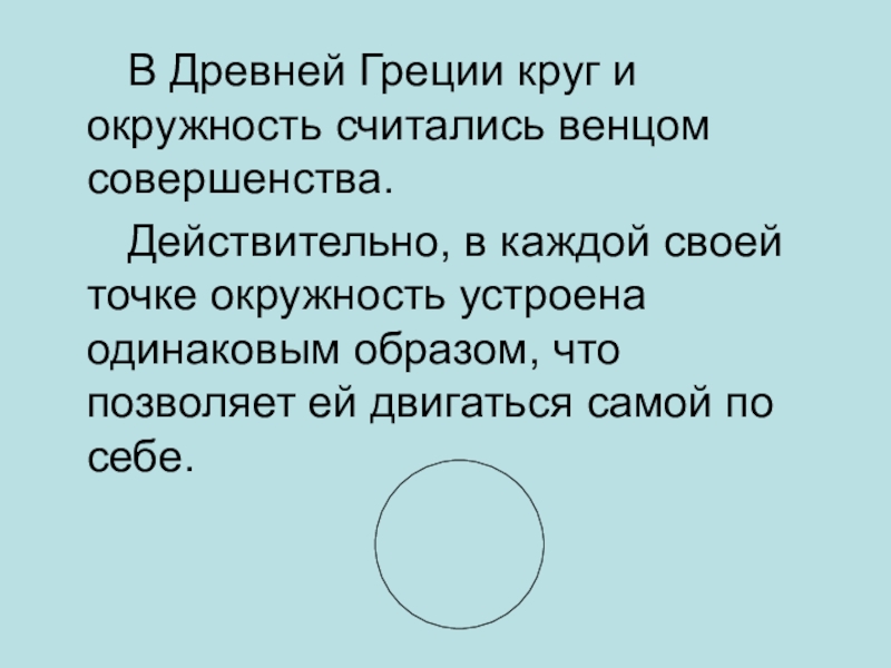 В Древней Греции круг и окружность считались венцом совершенства.    Действительно, в