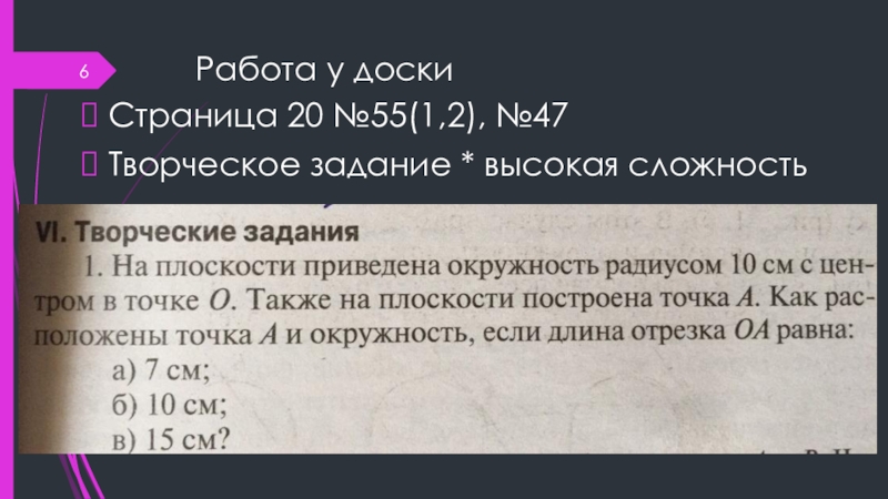 Работа у доски Страница 20 №55(1,2), №47Творческое задание * высокая сложность