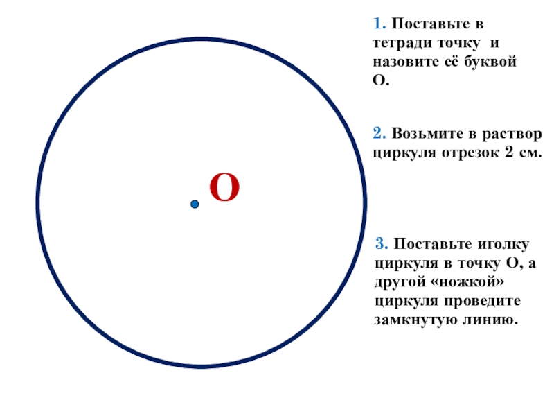 3. Поставьте иголку циркуля в точку О, а другой «ножкой» циркуля проведите замкнутую линию.