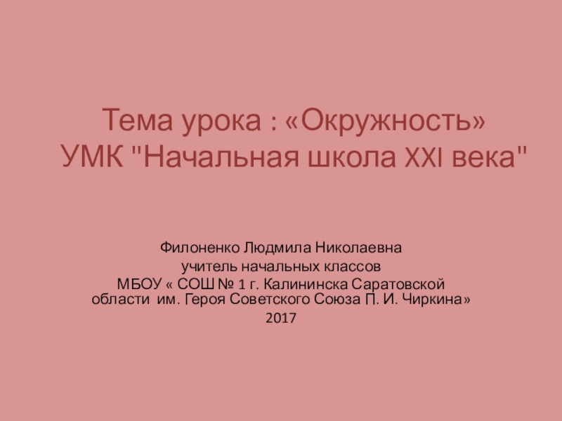 МБОУ « СОШ № 1 г. Калининска Саратовской области им. Героя Советского Союза П. И. Чиркина»