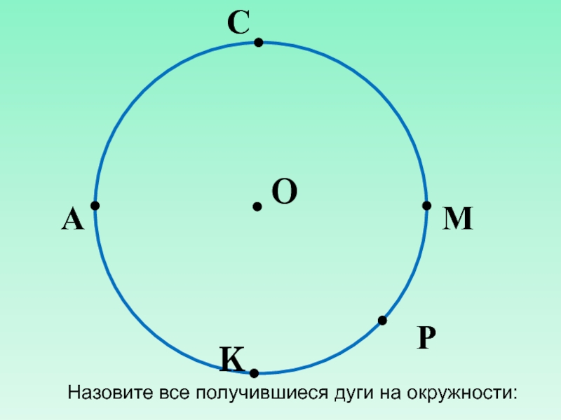 Чтобы было понятно о какой дуге идёт речь, возьмём на каждой дуге по одной точке М и Т.