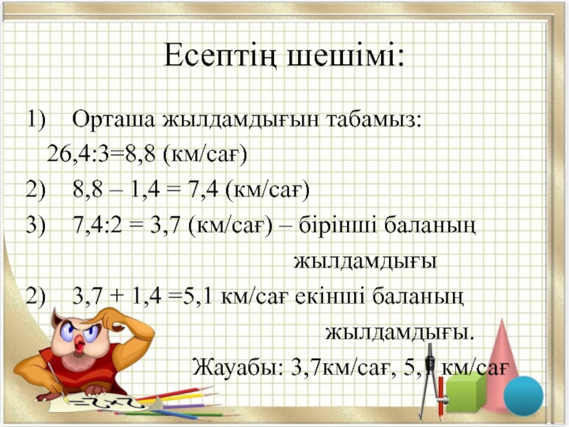 Ал енді киіктің салмағын білгілерің келсе төмендегі тапсырманы орындаңдар.