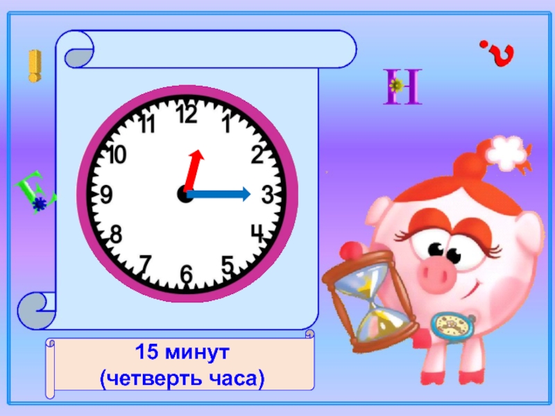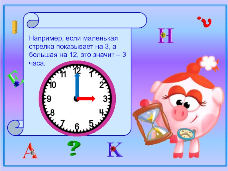 Слайд 6Например, если маленькая стрелка показывает на 3, а большая на 12,