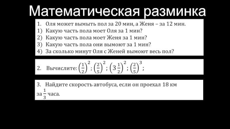 Презентация, доклад по математике на тему Основные задачи на дроби, 2 урок
