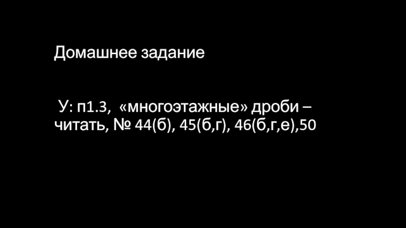 Слайд 9 Домашнее задание У: п1.3, «многоэтажные» дроби – читать, № 44(б), 45(б,г),
