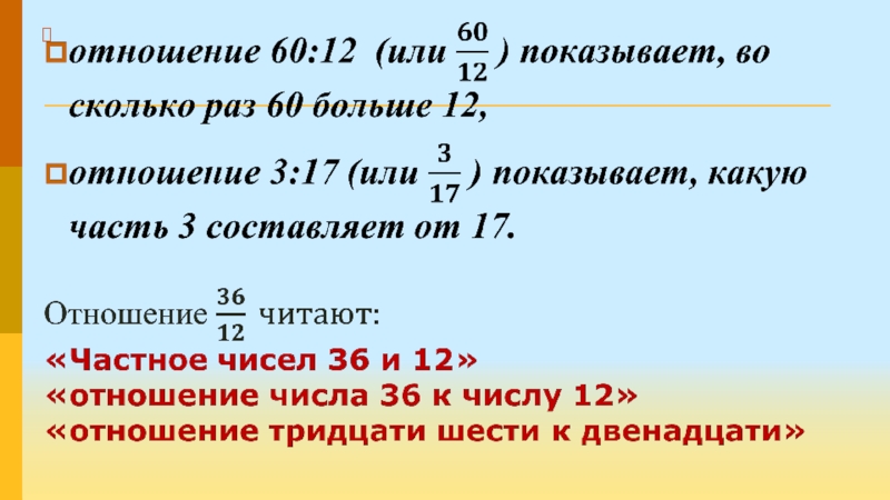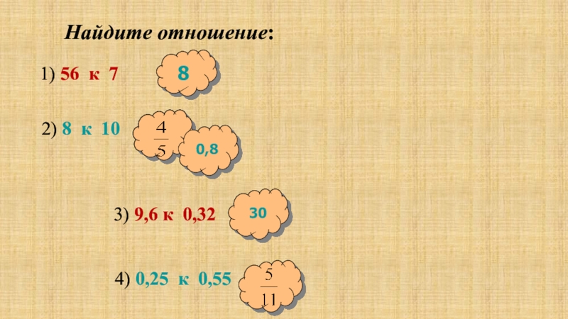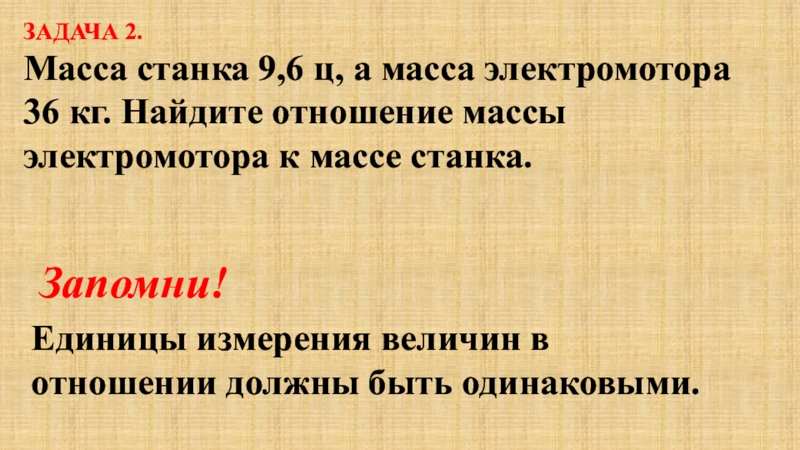 Единицы измерения величин в отношении должны быть одинаковыми.
