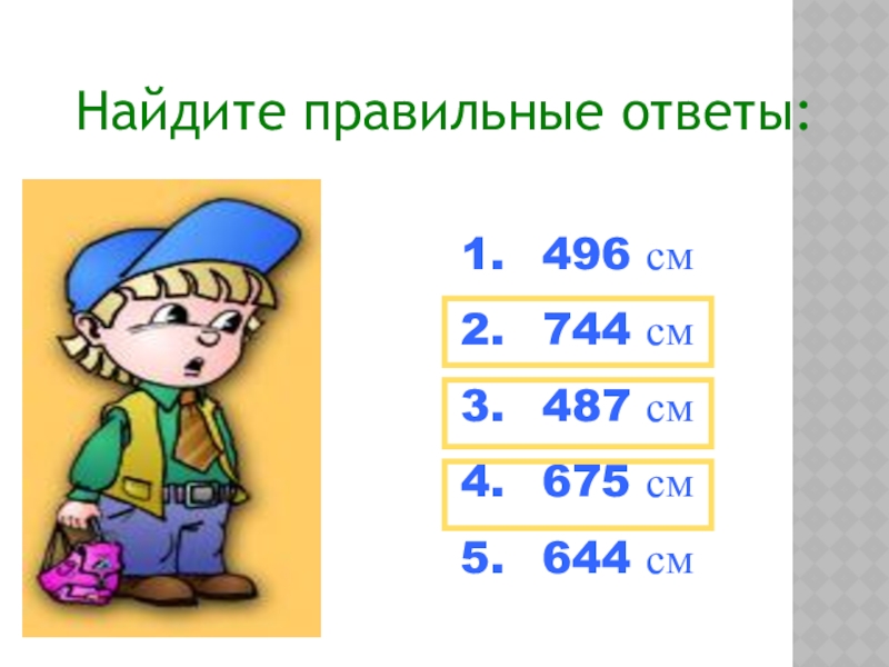 496 см 744 см 487 см 675 см 644 смНайдите правильные ответы: