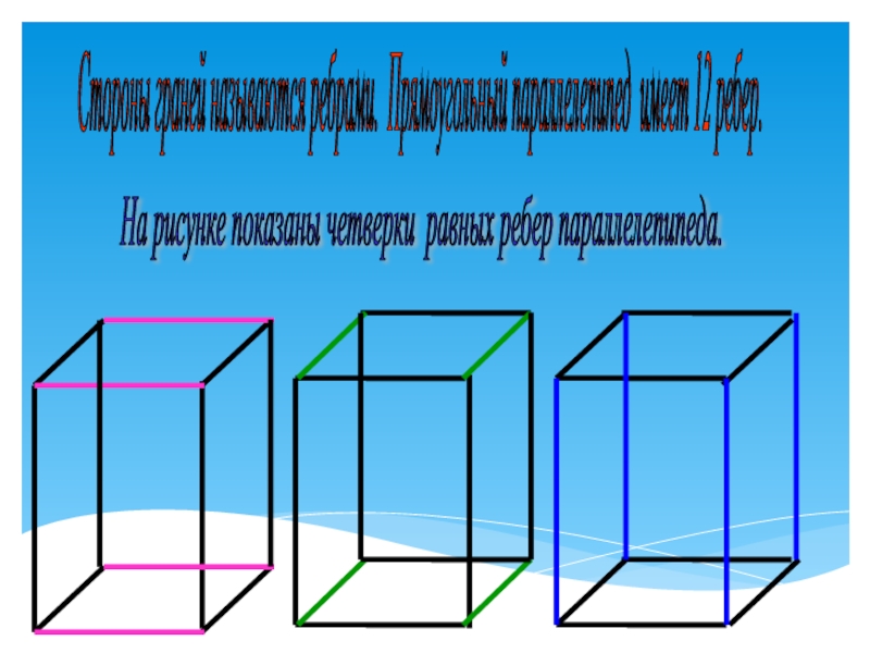 У прямоугольного параллелепипеда 12 ребер, каждое из которых повторяется 4 раза.