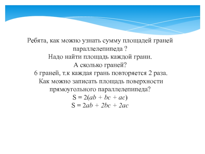 Ребята, а как можно узнать сумму всех ребер прямоугольного параллелепипеда?