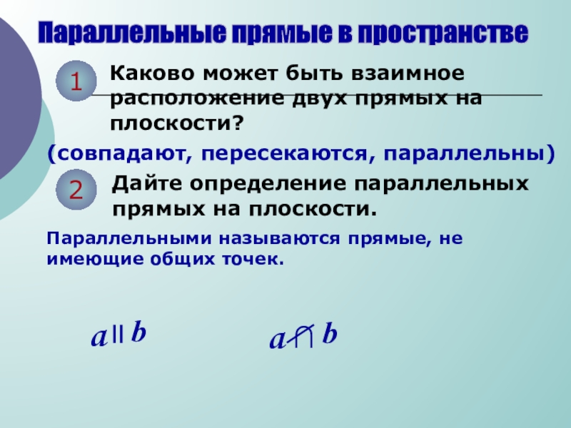 Параллельными называются прямые, не имеющие общих точек.