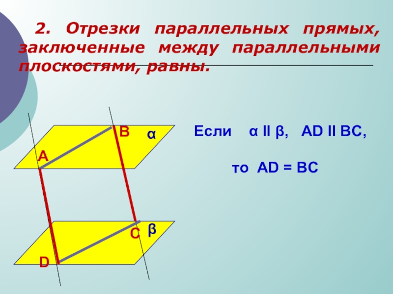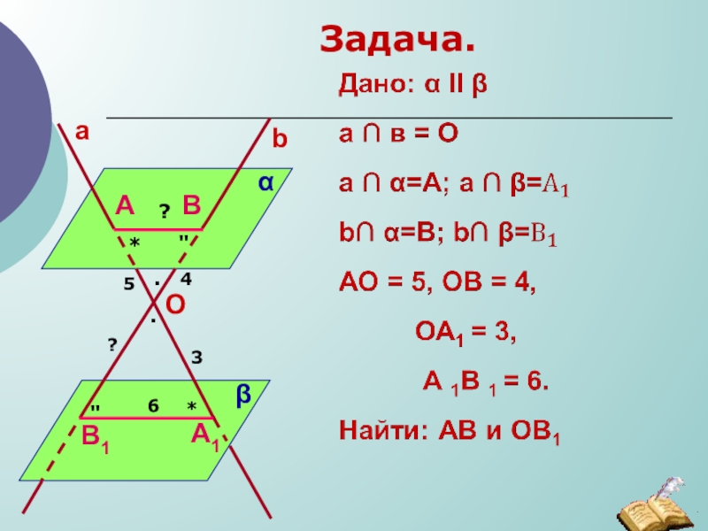 Если две пересекающиеся прямые одной плоскости параллельны соответственно двум прямым другой плоскости, то плоскости параллельны.