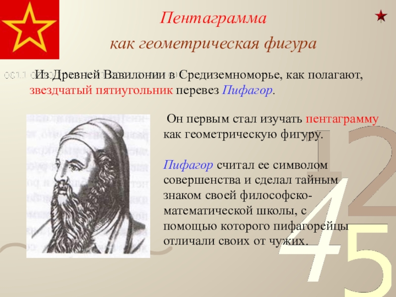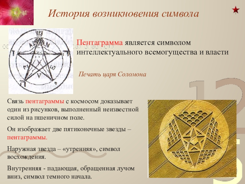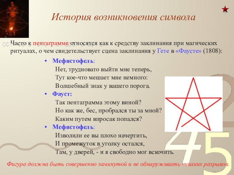 поэтому оно графически изображается фигурой человека, чья голова, разведенные в стороны руки и широко расставленные ноги образуют пятиконечную звезду, или просто пятиконечной звездой (пентаграммой).