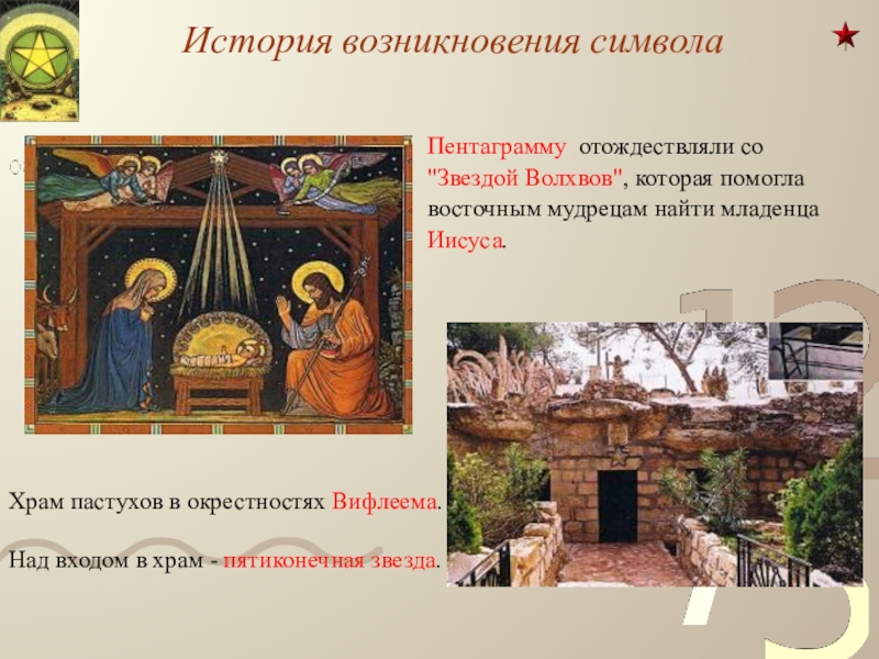 С пятью лучами обычно изображается Вифлеемская звезда.